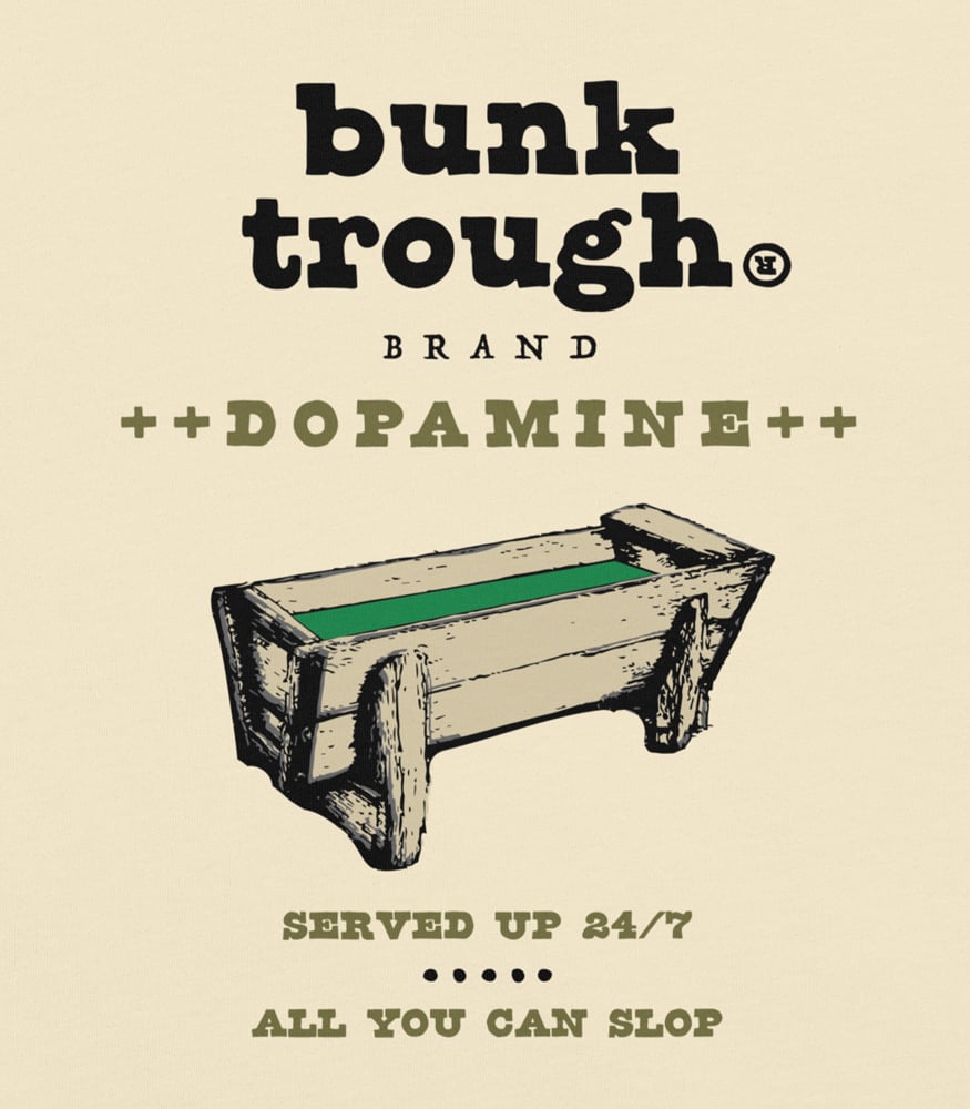 TAGS :: #bunktrough #dopamine #dopaminehit #allyoucaneat #allyoucanslop #24-7 #bunktroughbrand #bunk #pigout #socialmediaadditiction #addiction #addictivebydesign #glitteringditch #screenaddiction #nonsense #fomo #mastercorp